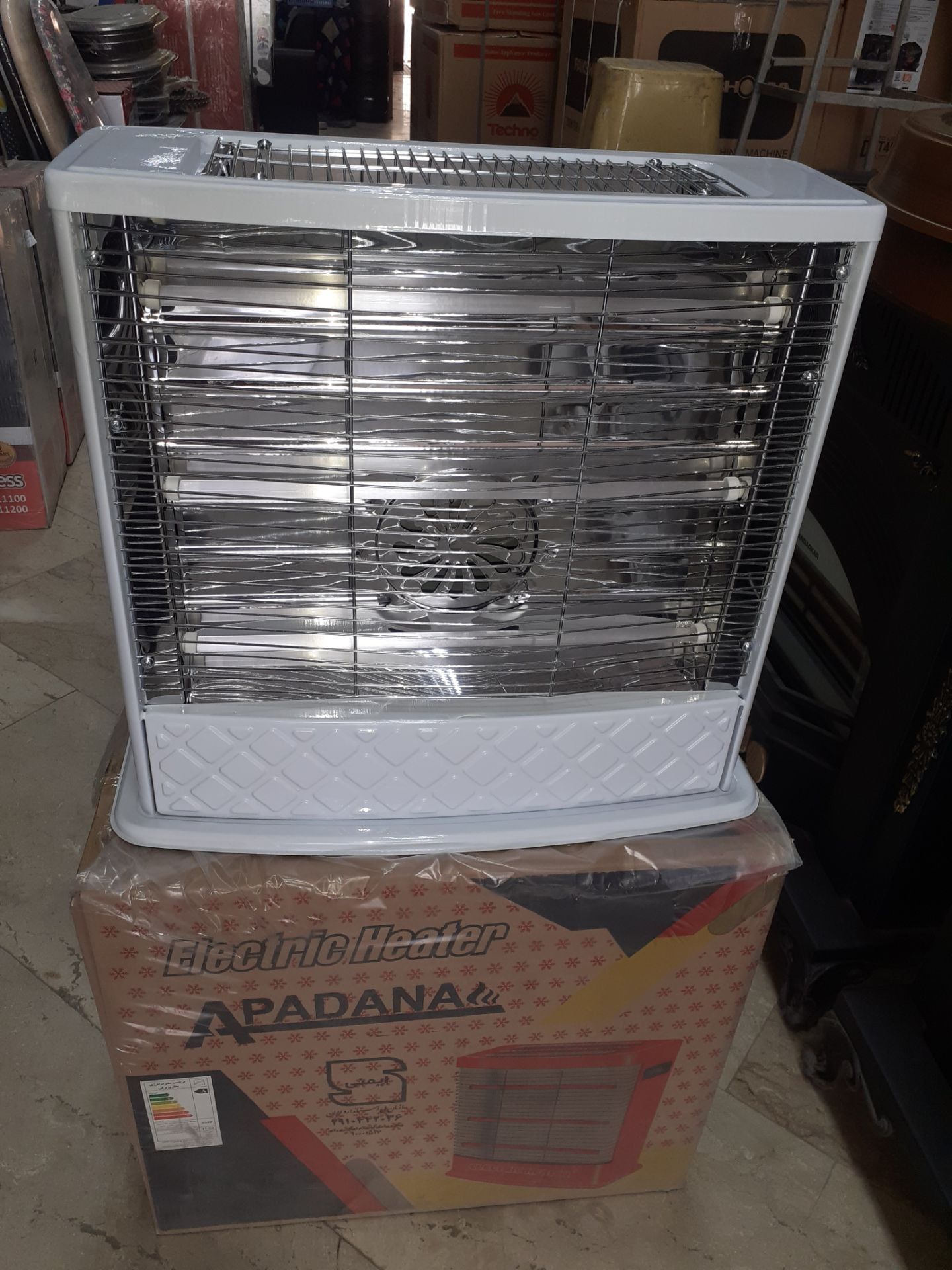 بخاری برقی آپادانا فن دار ۵ المنت کم مصرف دارای استاندارد دارای مصرف انرژی Aمجهز به قطع کن هوشمند قیمت مناسب قابل سفارش